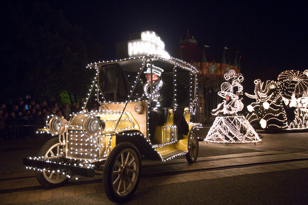 Der HANSA-PARK von oben. Es ist Herbstzauber am Meer. Alles ist erleuchtet.